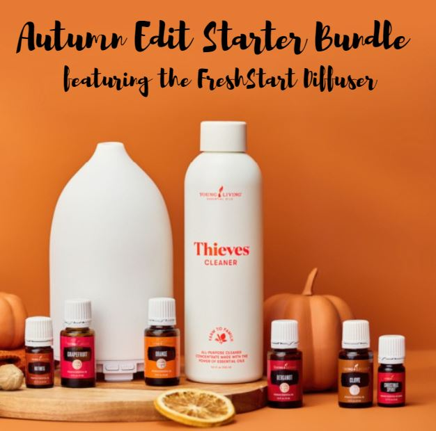 Ready to fall in love with fall? The Autumn Edit™ Starter Bundle featuring the FreshStart™ Diffuser is citrus, spice, and everything nice about autumn! Wrap your home in these warm, inviting scents of the season: – FreshStart™ Diffuser – Thieves® Cleaner – Christmas Spirit™ essential oil blend, 5 ml – Nutmeg essential oil, 5 ml – Orange essential oil, 15 ml – Clove essential oil, 15 ml – Grapefruit essential oil, 15 ml – Bergamot essential oil, 15 ml