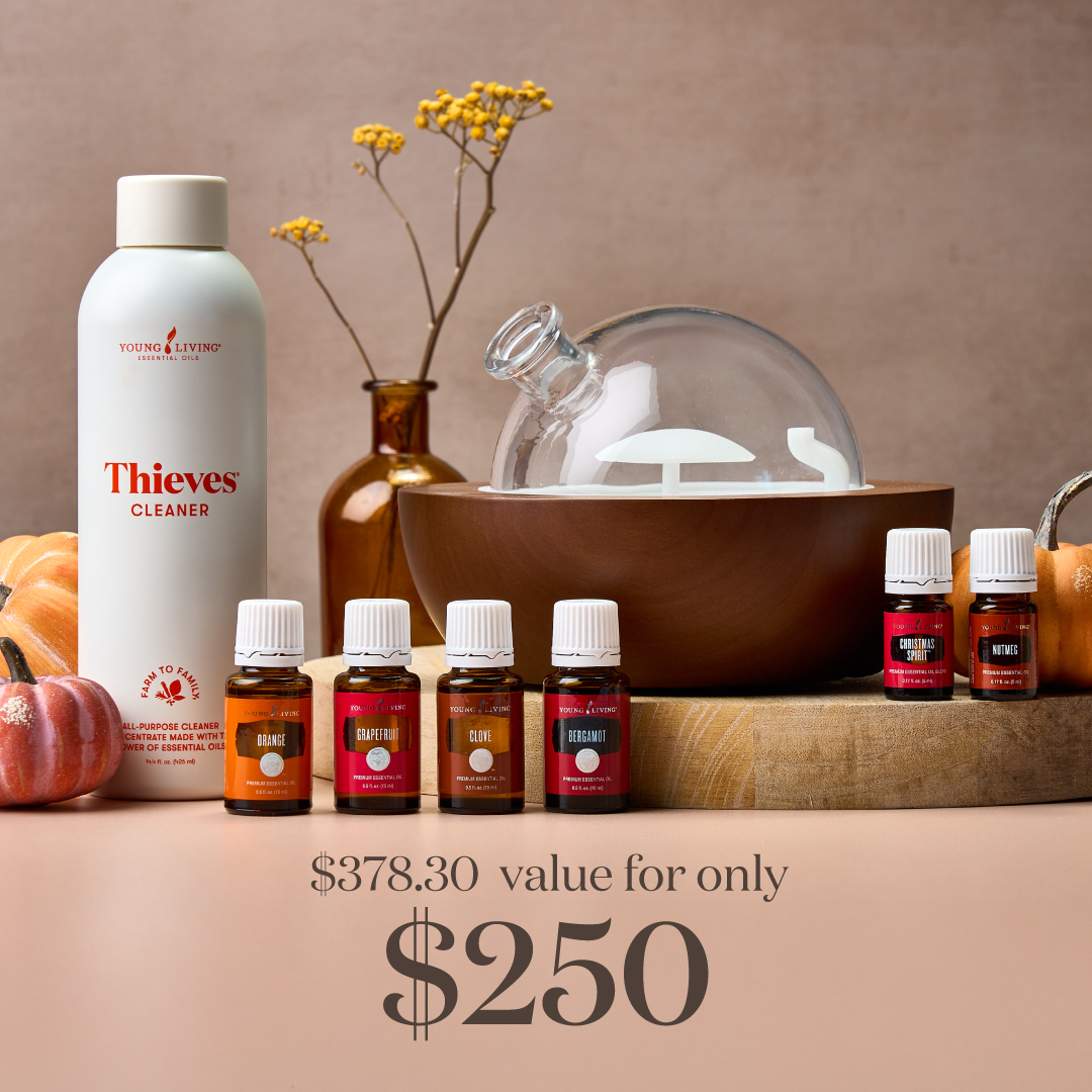 This limited-time Autumn Edit™ Starter Bundle featuring the Mini Aria™ Diffuser is a fun and fresh way to introduce new Customers or Brand Partners to your favorite products—or keep it for yourself as a fall treat! From the zesty, uplifting aroma of Bergamot essential oil to the warm coziness of Clove oil and the cleaning power of Thieves® Cleaner, this bundle offers everything you need to embrace autumn with open arms. The bundle also comes with a Mini Aria™ Diffuser, plus a 5 ml bottle of Christmas Spirit™ essential oil blend to help you get a jump on the holidays!