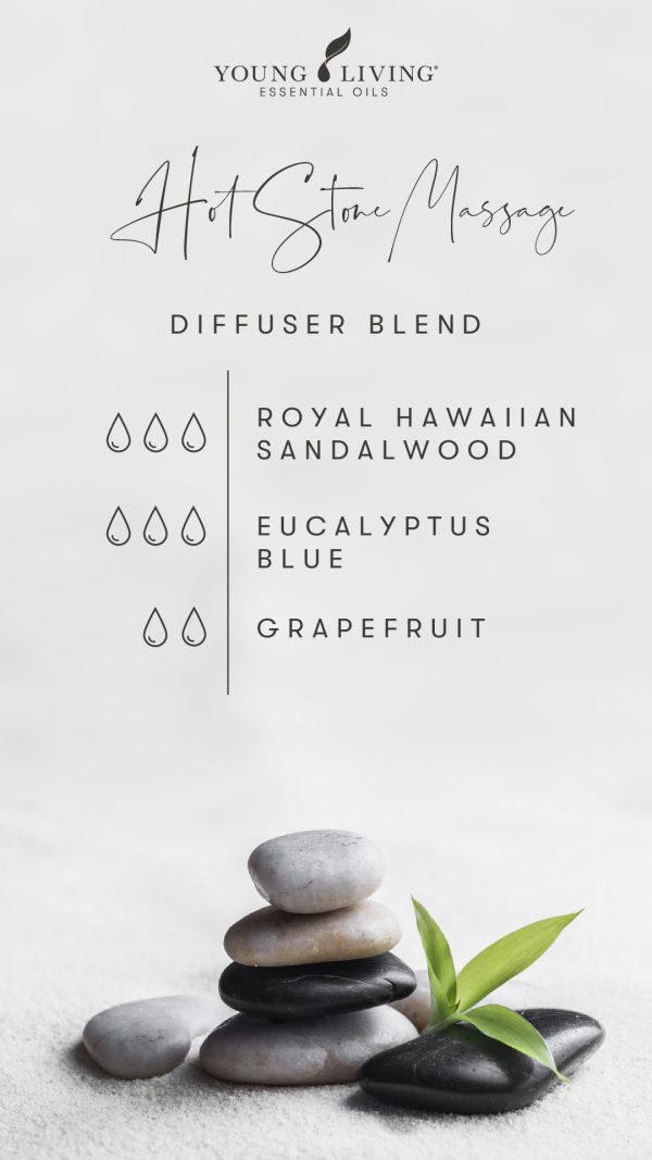 Smooth, warm basalt stones placed on your back is the definition of exotic luxury. Bring home everything but the stones with this tropical, tangy blend. Combine Royal Hawaiian Sandalwood™ and Eucalyptus Blue for a gentle and calming scent. Add a little Grapefruit for some sweet citrus, and voila—an aroma as rejuvenating as any hot stone massage!