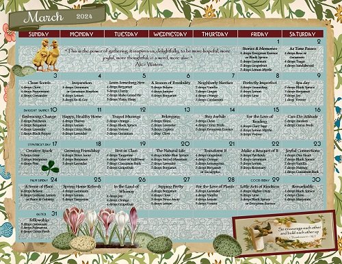 Winter has its moments – we all like things that come along with it, but come March, we are happy to see Spring’s arrival. This month’s diffuser calendar theme is all about ideas for creating a community of like-minded individuals. Gatherings – this is where you take your already existing skills and talents, weave them throughout your time together, and talk about how you can pursue a more toxin-free lifestyle.Â