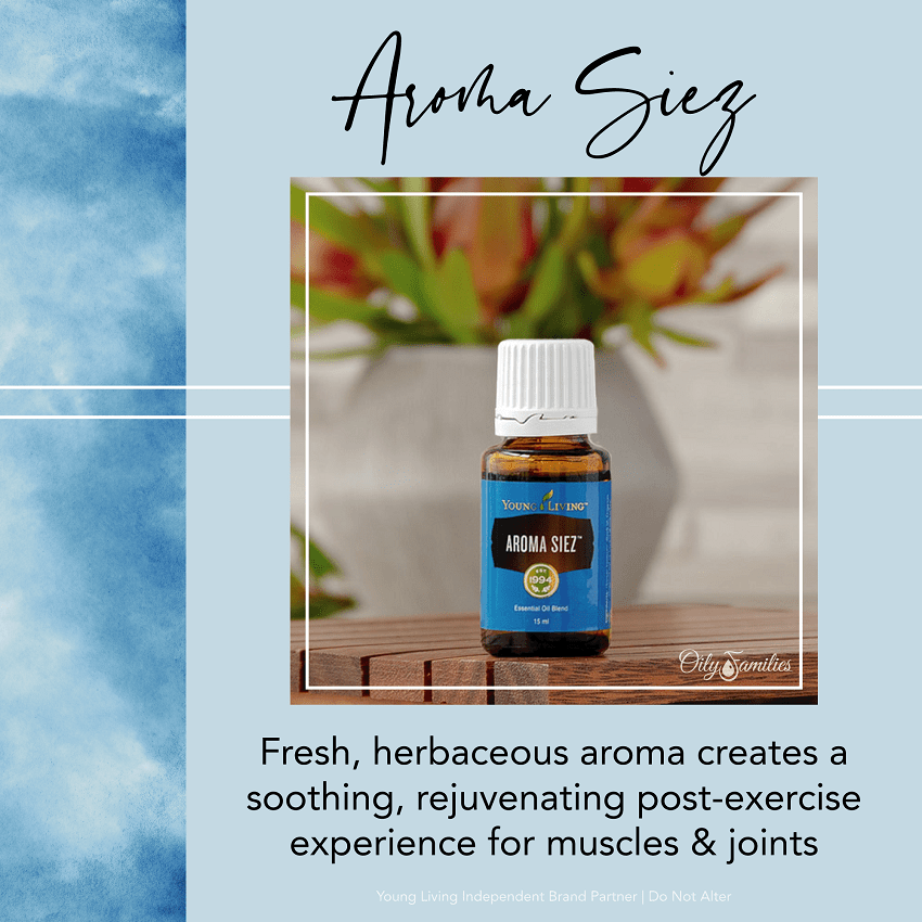Aroma Siez by Young Living supports skin and muscles, ideal post-workout or for Raindrop Technique. Uplifting, soothing, and rejuvenating.