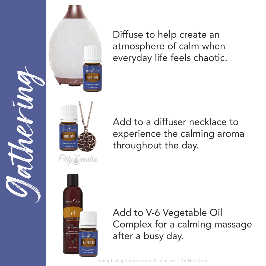 Gathering is a blend of Lavender, Northern Lights Black Spruce, Geranium, Frankincense, Royal Hawaiian Sandalwood, Ylang Ylang, Vetiver, Cinnamon Bark, and Rose. It is a spiritual blend for rituals and prayer. The oils create an aroma to gather like-minded people together on a physical, emotional, mental, social, and spiritual level, allowing you to rise above the chaotic energies of the world today and find a place of spiritual peace. When you can do this, you become clear on your true spiritual potential and see your connection to the Divine, harmonizing your body, mind, and soul.