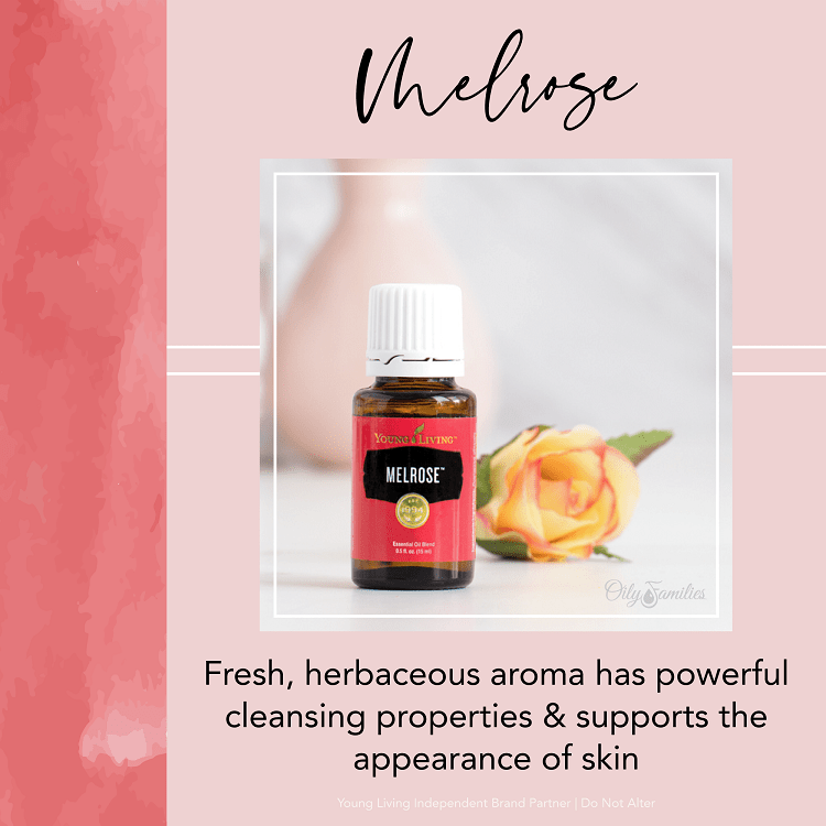 Melrose™ essential oil blend is a combination of four essential oils: Melaleuca Alternifolia, Melaleuca Quinquenervia, Rosemary, and Clove.  It has powerful cleansing properties that support the appearance of the skin.