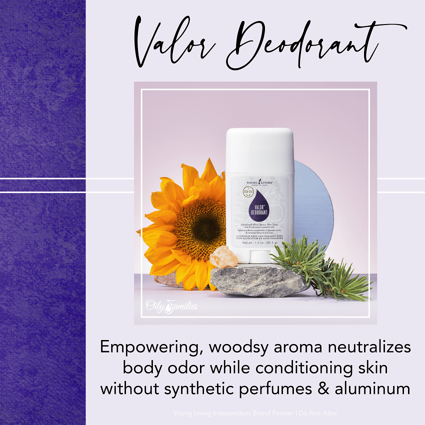 Formulated with naturally derived ingredients, Valor® Deodorant combines the moisture-absorbing properties of arrowroot powder with our plant-derived deodorizing technology and premium essential oils for the odor protection you need without the aluminum or harsh chemicals.