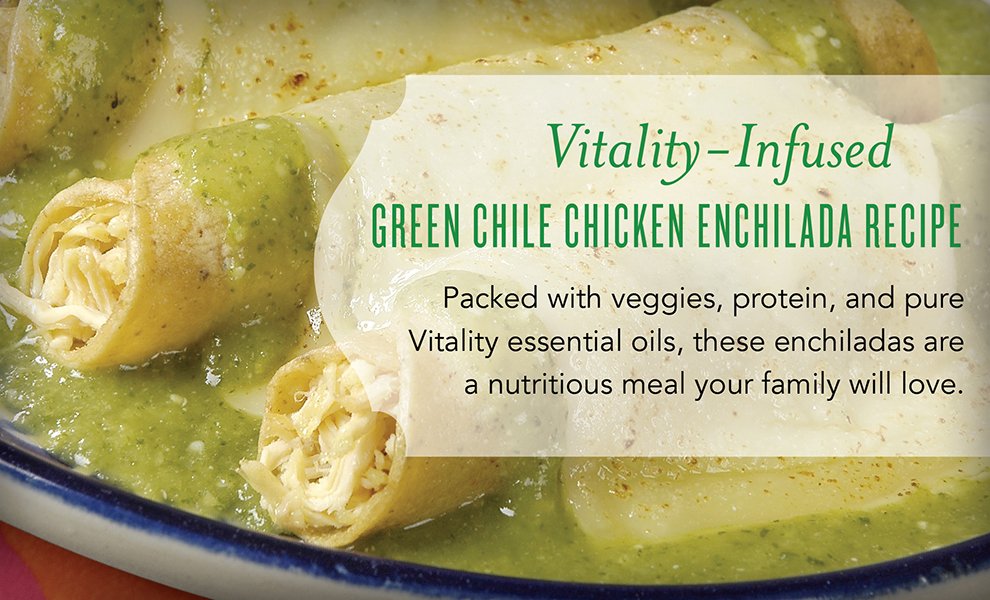 Send your taste buds on a trip south of the border with this exciting twist on a classic recipe. Pure Vitality™ essential oils add a hint of flavor and spice that take these enchiladas to the next level. Simple, filling, and delicious, this is bound to become a weeknight staple.