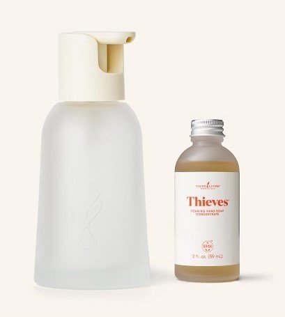 Thieves Foaming Hand Soap Concentrate Collection offers a low-tox, eco-friendly way to keep hands clean. It’s made with plant-based ingredients and infused with our signature Thieves essential oil blend. This warm, spicy-citrus formula includes moisturizing apple extract, gentle cleansers, and no harsh chemicals. You’ll love how soft and refreshed your hands feel. Plus, the reusable glass dispenser helps cut down on plastic waste.