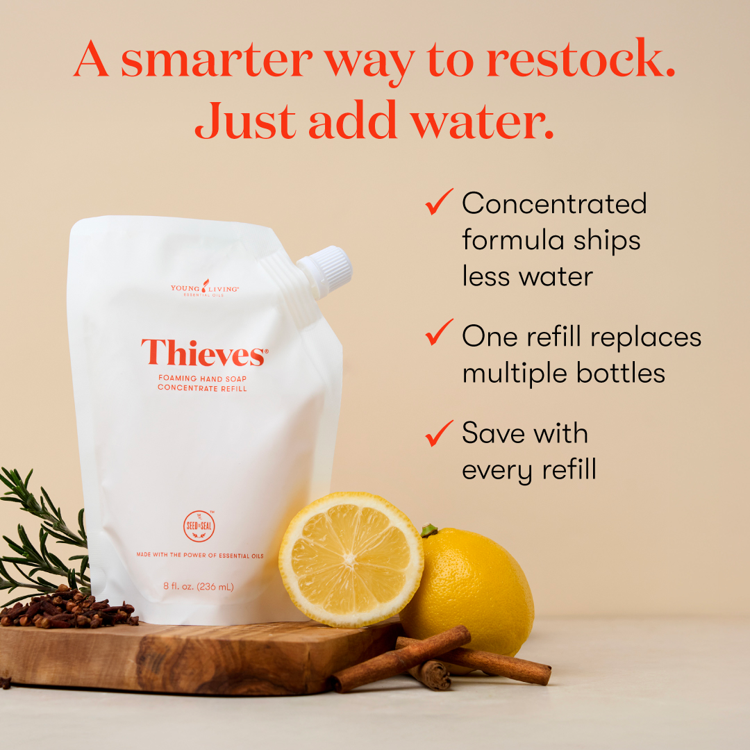 If you’re tired of plastic waste and harsh hand soaps that dry your skin, Thieves® Foaming Hand Soap Concentrate is the upgrade you need. This low-tox, refillable option gives you a rich, gentle cleanse with less waste and more savings. The plant-based formula helps keep your hands soft while supporting your clean-living goals.