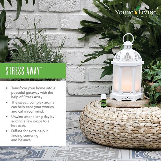 - Diffuse Stress Away in your home after a long day for a fresh, soothing aroma that helps promote feelings of relaxation.