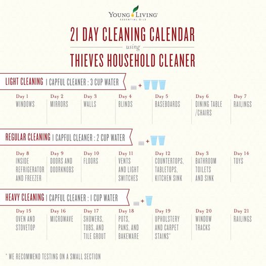 21 Day Cleaning Calendar Using Thieves Household Cleaner